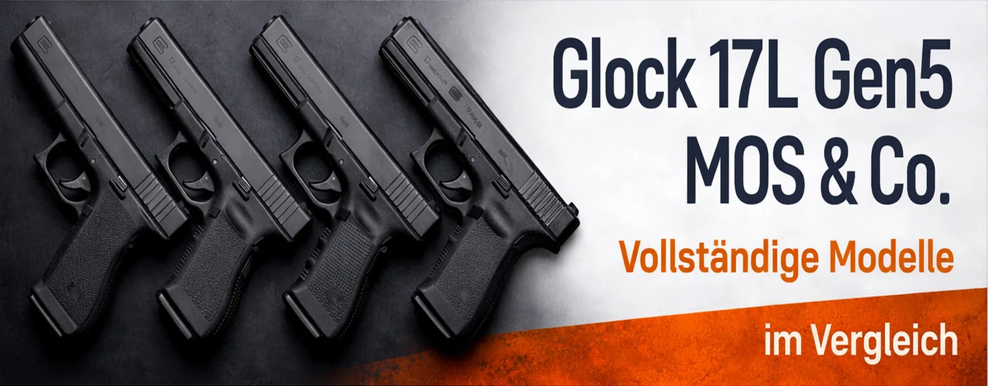 Die Auswahl der Glock‑17‑Familie reicht von der präzisen Glock 17L Gen5 MOS mit langem Lauf, ambidexter Steuerung und...