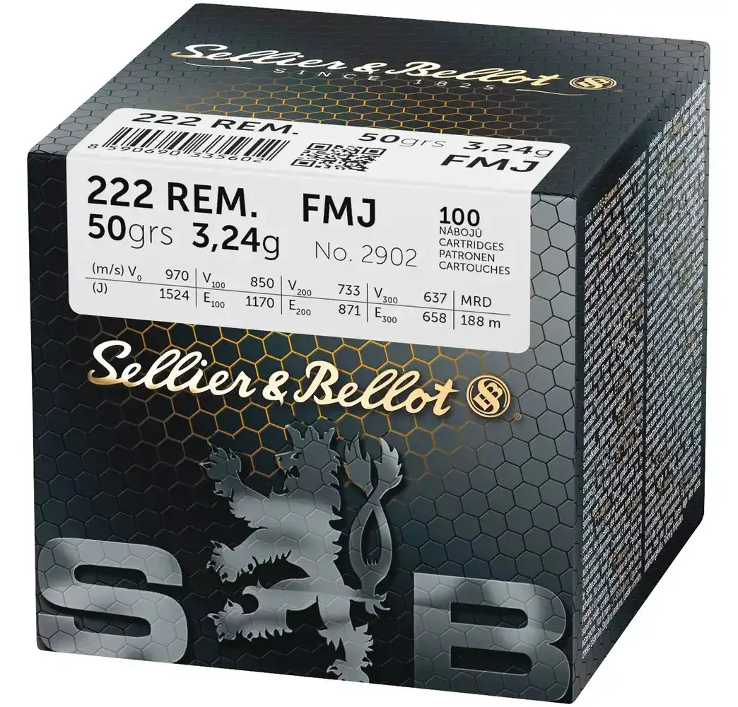 Jetzt Sellier & Bellot .222 Rem. Vollmantel 3,2g/50grs. in der praktischen 100er Packung kaufen und von Top-Qualität, Zuverlässigkeit und Präzision beim Training oder Wettkampf profitieren!