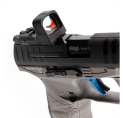 Die Walther Q5 Match ist eine exzellente Wettkampfpistole mit sportlichen Ambitionen. Aufgrund der Lauflänge, langen Visierlinie, Leuchtpunktvisier-Aufnahme und der optimalen Abzugscharakteristik eignet sie sich für dynamische Disziplinen ebenso wie als Verteidigungswaffe. Die CO₂-betriebene Airgun im Kaliber 4,5 mm Diabolo ist das perfekte Ebenbild für Freizeitschützen mit gehobenen Ansprüchen an Präzision und Realismus in Optik und Handling. Dafür sorgen das clevere System mit 21-schüssigem Kettenmagazin, ein gezogener Lauf und der deutlich spürbare Rückstoß bei jedem Schuss. Vervollständigt wird das Combo-Set durch das mitgelieferte Leuchtpunktvisier Umarex RDS 8 und eine Cover-Plate zur Montage bei Verwendung von Kimme und Korn.