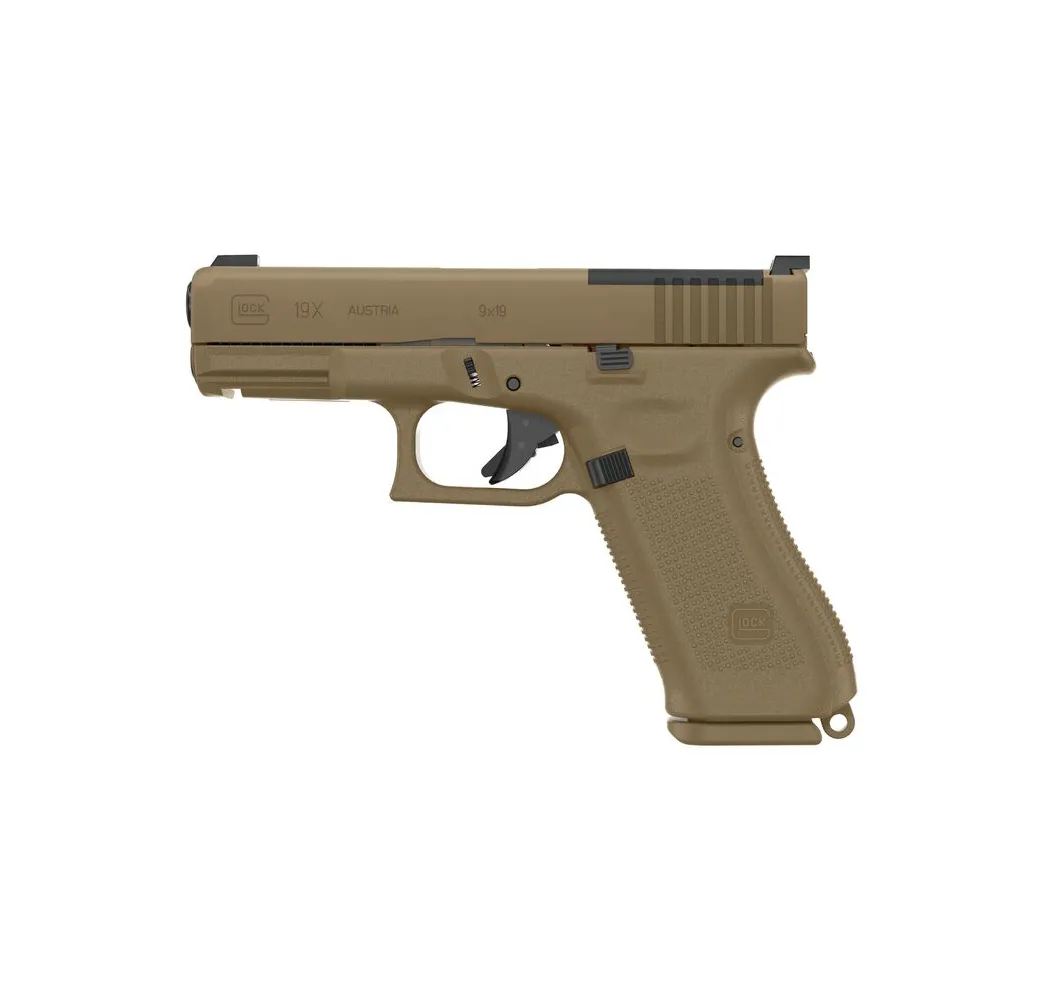 Sichern Sie sich Ihre GLOCK 19X Gen5 jetzt mit großem Magazin und Coyote-Beschichtung bei waffenpro.de!